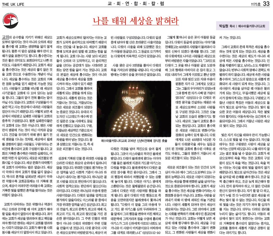 나를 태워 세상을 밝혀라 -박심원 목사-