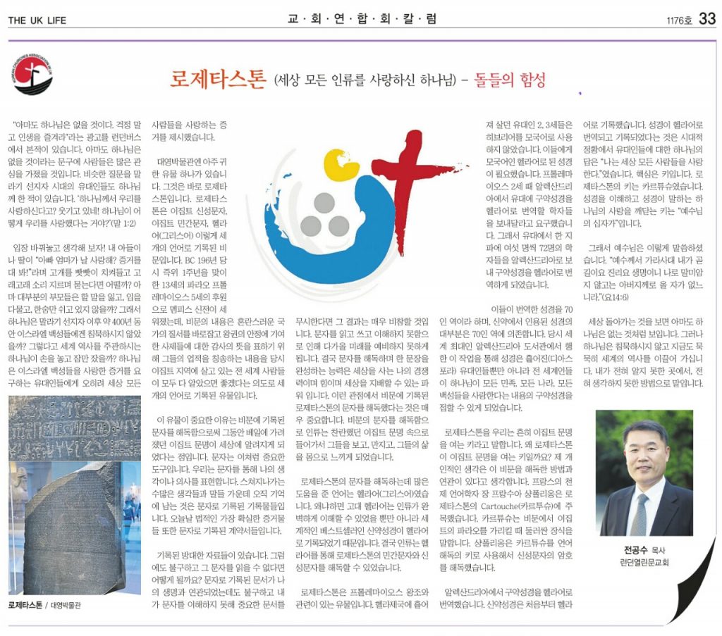 로제타스톤(세상 모든 인류를 사랑하신 하나님)- 돌들의 함성 -전공수 목사-