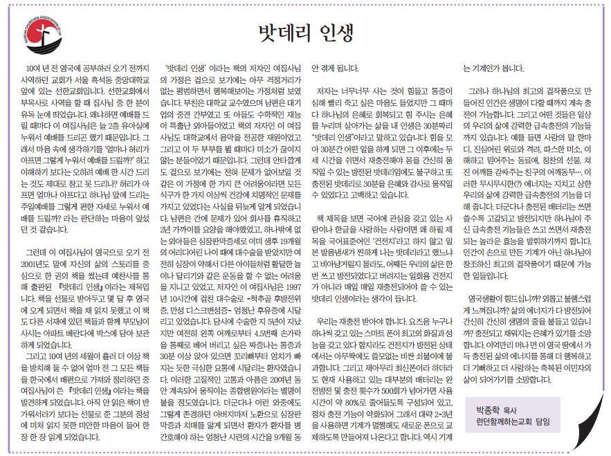 밧데리 인생- 박종학 목사(런던함께하는 교회)