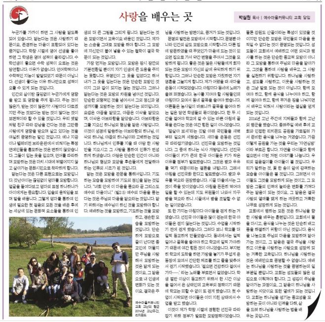 사랑을 배우는 곳 – 박심원 목사 (예수마을커뮤니티교회 담임)
