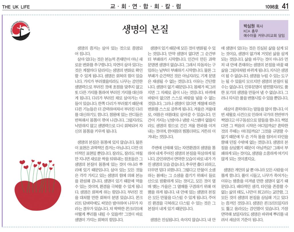 생명의 본질 – 박심원 목사