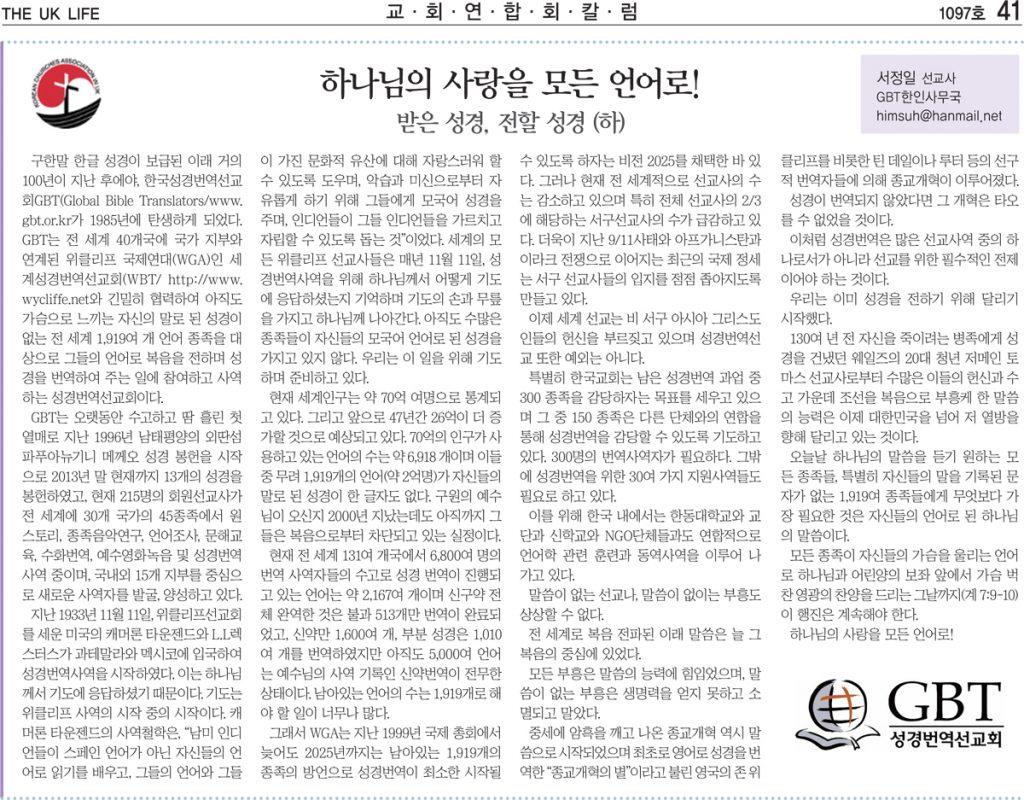 하나님의 사랑을 모든 언어로 – 서정일 선교사