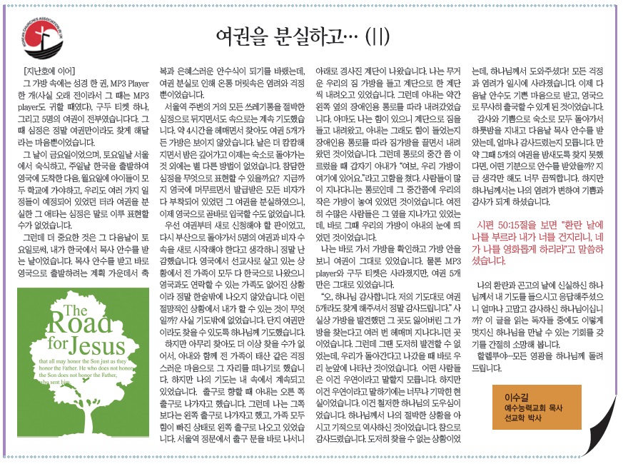 여권을 분실하고. 2편 – 이수길 목사 –