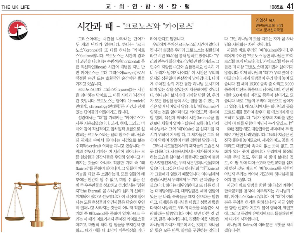 시간과 때 – "크로노스"와 "카이로스" – 김일신 목사