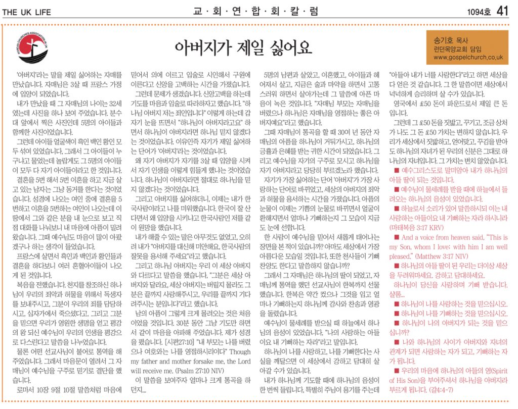 아버지가 제일 싫어요 – 송기호 목사 (KCA 예배영성국장)
