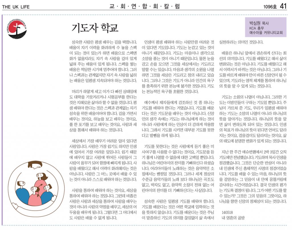 기도자 학교-박심원 목사 (KCA 총무)