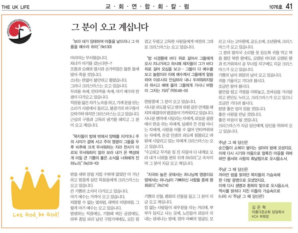 그분이 다시 오고 계십니다 – 김은혁 목사