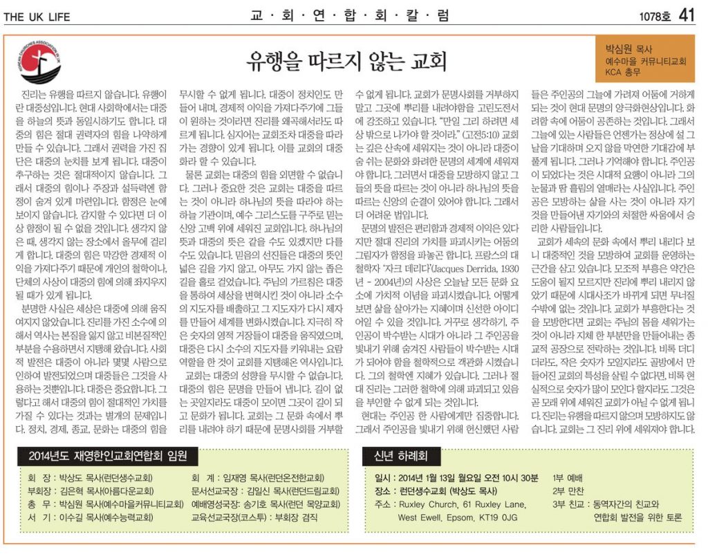 유행을 따르지 않는 교회 – 박심원 목사