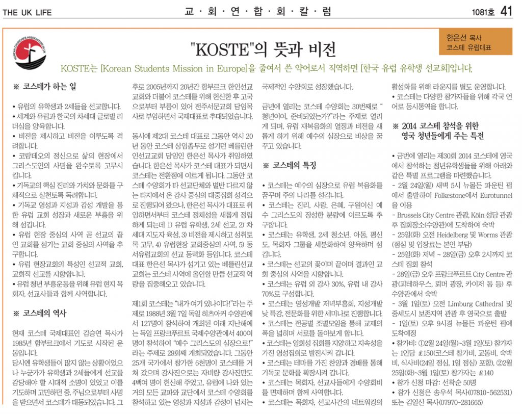 KOSTE의 뜻과 비전 – 한은선 목사