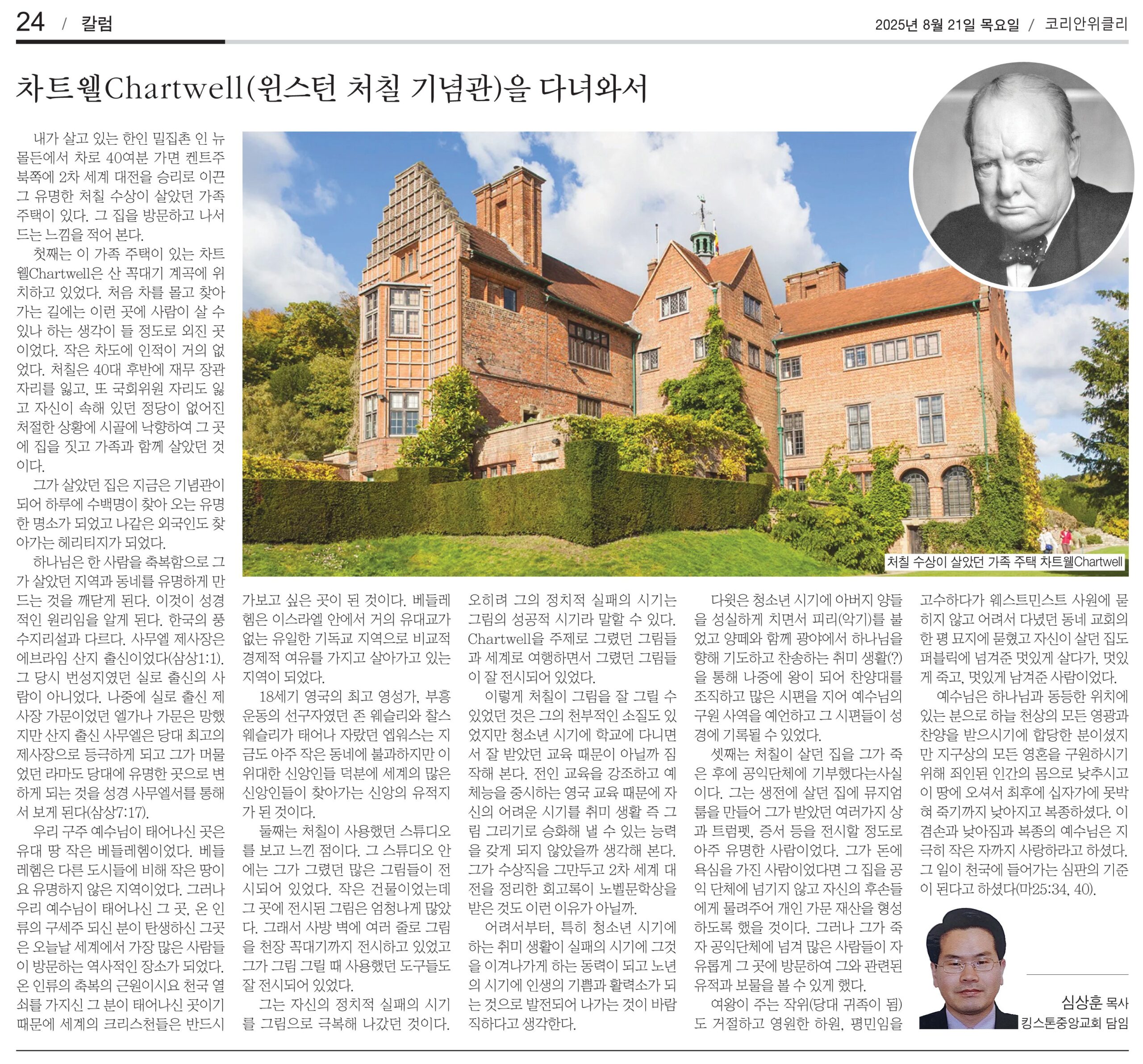 연재기사 차트웰 Chartwell (윈스턴 처칠 기념관)을 다녀와서 – 심상훈 목사 PrevPrevious8월의 희망 – 최성주 목사 Next11월에 누리는 은총 – 김석천 목사Next